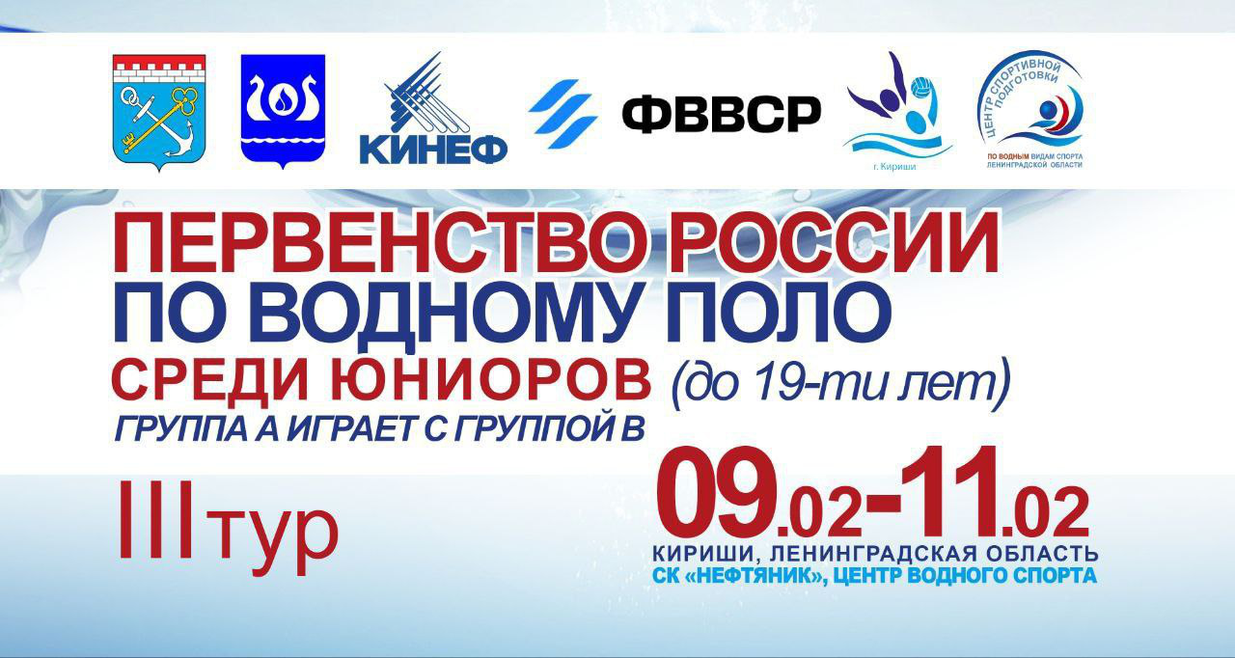 В городе Кириши пройдет III тур первенства России по водному поло среди юниоров до 19 лет (II группа). В рамках тура команды группы А сыграют с командами группы Б.