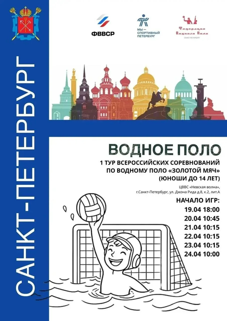 1 тур Всероссийских соревнований по водному поло «Золотой мяч» (юноши до 14 лет) стартует в Санкт-Петербурге.